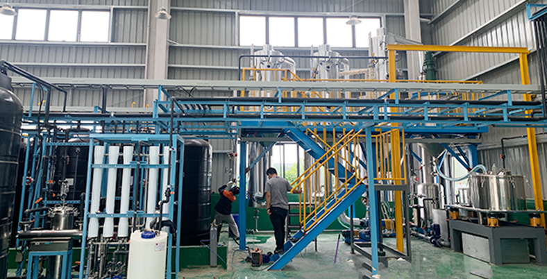 張家港某公司金屬清洗廢水使用現場,蒸發量每小時200kg,雙效蒸發器,配備電加熱蒸汽發生器